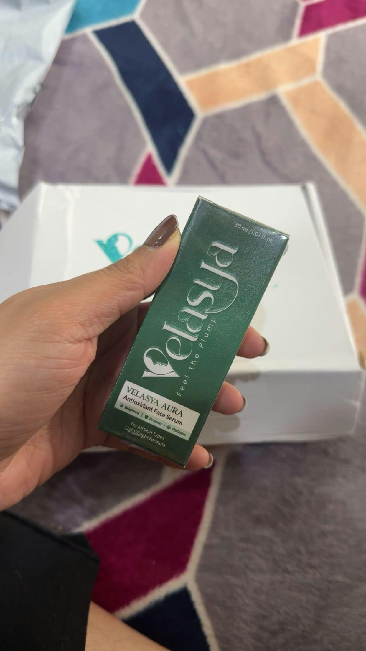 Absolutely loving the Velasaya Aura antioxidant Face Serum! It gives a soft glow, keeps my skin moisturised, and feels so gentle on the face. Great for daily use.